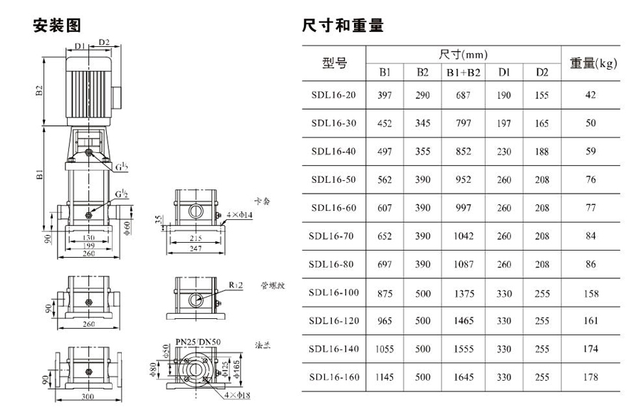 SDL16/SDLT16為配用標(biāo)準(zhǔn)電機(jī)的非自吸立式多級(jí)離心泵,電機(jī)軸和泵軸用聯(lián)軸器直接聯(lián)接,把拉桿用螺母將外筒,過(guò)流部件固定在支架和進(jìn)出水體之間,泵進(jìn)出水口在泵底部的同一直線上。泵可根據(jù)需要配置智能保護(hù)器,對(duì)泵的干轉(zhuǎn)、缺相、過(guò)載等進(jìn)行有效的保護(hù)。