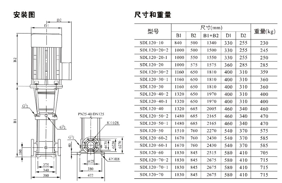 SDL120/SDLT120為配用標(biāo)準(zhǔn)電機的非自吸立式多級離心泵,電機軸和泵軸用聯(lián)軸器直接聯(lián)接,把拉桿用螺母將外筒,過流部件固定在支架和進(jìn)出水體之間,泵進(jìn)出水口在泵底部的同一直線上。泵可根據(jù)需要配置智能保護(hù)器,對泵的干轉(zhuǎn)、缺相、過載等進(jìn)行有效的保護(hù)。