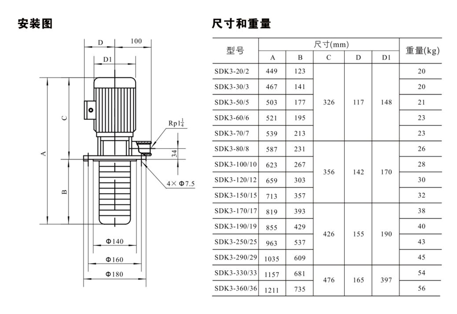SDK3/SDKT3為配用標(biāo)準(zhǔn)電機(jī)的非自吸立式多級(jí)離心泵,電機(jī)軸和泵軸用聯(lián)軸器直接聯(lián)接的結(jié)構(gòu)。為滿足水槽或容器的安裝深度,可安裝空套的腔體來改變泵本身的侵入 深度。