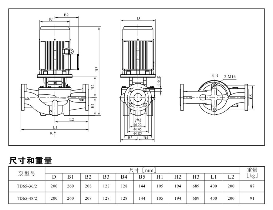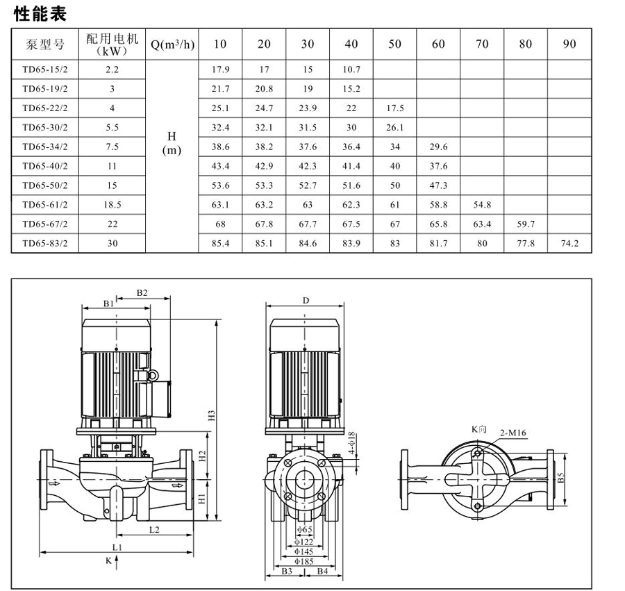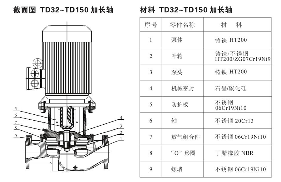 TD65系列單級管道離心泵,配有標(biāo)準(zhǔn)電 機(jī)和機(jī)械密封。此類產(chǎn)品的結(jié)構(gòu)與相近類型產(chǎn)品相比,更不易受到泵送液體中雜質(zhì)的影響。產(chǎn)品設(shè)計為頂部可拉出的拆裝形式,其可 以在不影響管路系統(tǒng)的情況下對泵進(jìn)行維修。所有泵采用創(chuàng)新式便拆式機(jī)械密封,更好機(jī)械密封無需拆卸電機(jī)。