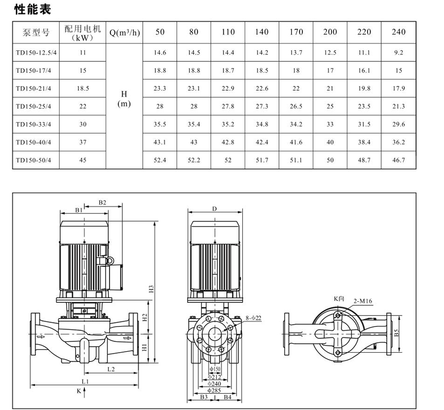 TD150系列單級管道離心泵,配有標準電機和機械密封。此類產(chǎn)品的結構與相近類型產(chǎn)品相比,更不易受到泵送液體中雜質(zhì)的影響。產(chǎn)品設計為頂部可拉出的拆裝形式,其可以在不影響管路系統(tǒng)的情況下對泵進行維修。所有泵采用創(chuàng)新式便拆式機械密封,更好機械密封無需拆卸電機。